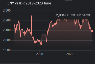 Grafik 4: Nilai Tukar CNY vs IDR Juni 2018- Juni 2023