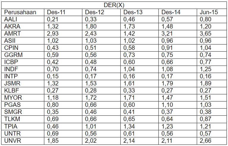 Daftar DER Perusahaan-Perusahaan Tbk Penopang Utama IHSG di Berbagai Bidang yang di Bawah 4 per 30 Juni 2015