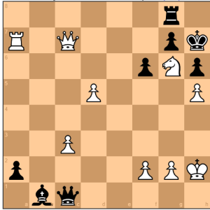 Partai ini menjadi teka-teki bagi banyak pemain catur kelas dunia sekali pun Teka-teki: Lihat gambar di bawah ini sd Langkah ke-46. Putih mendapat giliran melangkahkan buah caturnya. Jawablah pertanyaan: Langkah mana yang diambil oleh Putih sehingga Hitam langsung menyerah akan kena skak mati yang tidak dapat dhindarkan ke mana pun Hitam melangkahkan bidaknya?