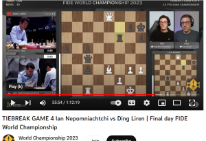 Pada 30 April 2023, para penggemar catur sedunia, terutama para fan Super Grandmaster (SGM) Internasional Ding Liren (peringkat Elo 2789), bergembira ria ketika Ding, jalan 31 tahun, pecatur terkemuka Tiongkok, mengalahkan SGM Ian Nepomniatchchi (sering dipanggil sebagai Nepo; 2794) dari Russia di Kejuaraan Catur Dunia di Kota Astana, Kazakhtan, melalui partai tiebreak (penentuan pemenang) ke-4 yang benar-benar menegangkan. (Di setiap partai tiebreak, seorang pemain punya 25 menit saja sampai selesai dan mendapat tambahan 10 detik setiap kali melangkahkan biji catur. Siapa pun yang kehabisan waktu dinyatakan kalah)